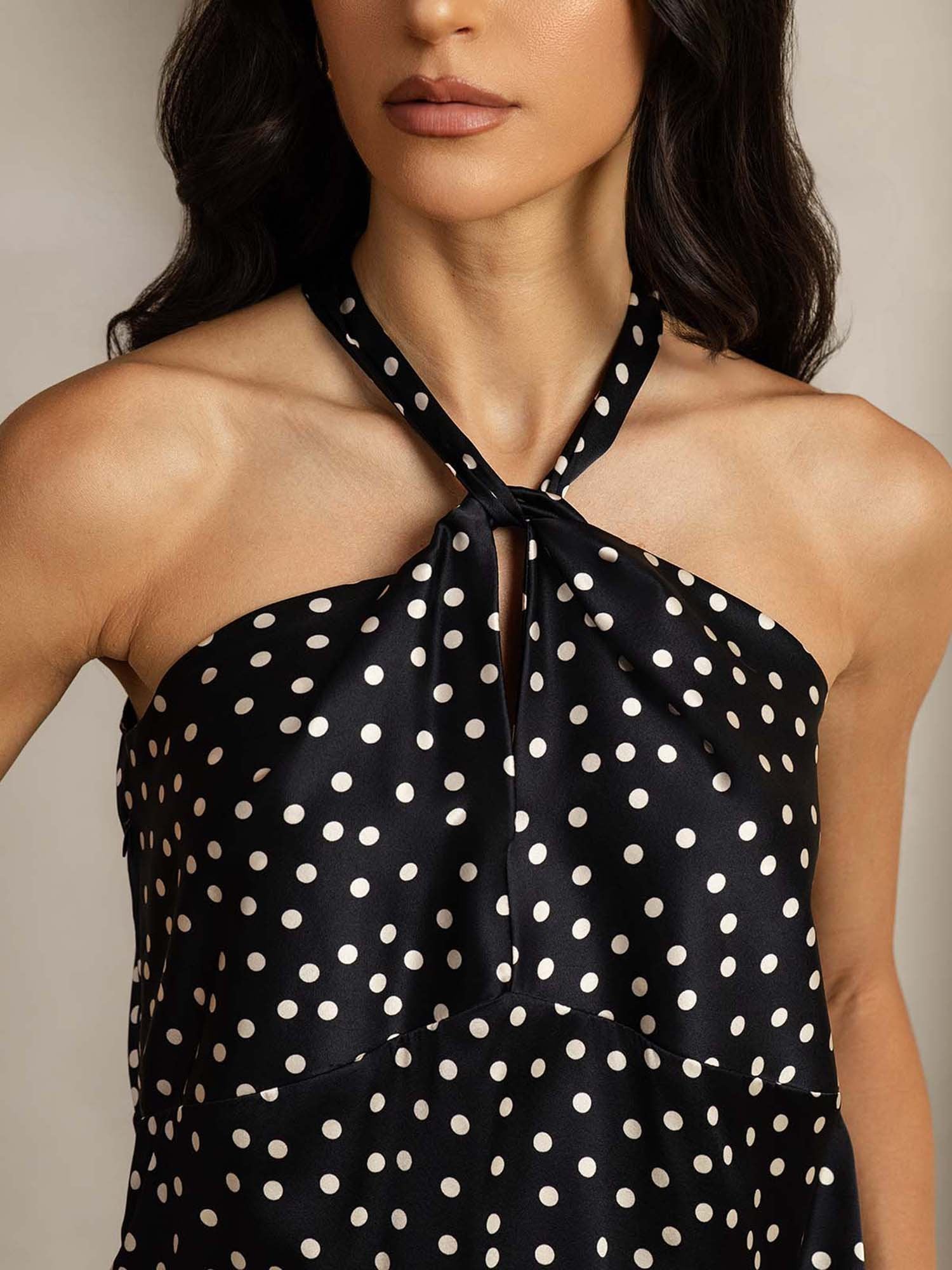 19Momme Seidentop Punktmuster Ohne Ärmel Mit Neckholder Twist-Design Und Knopfverschluss Hinten