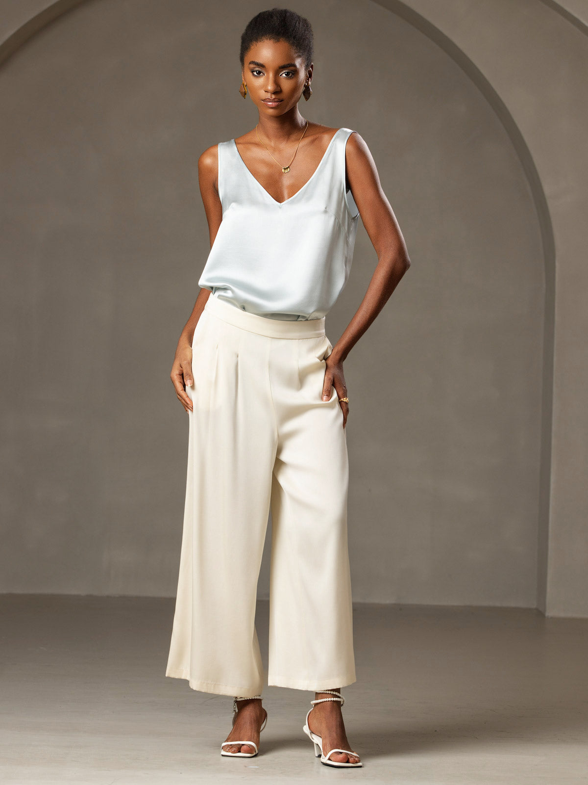 19Momme Seiden V-Ausschnitt Träger TankTop