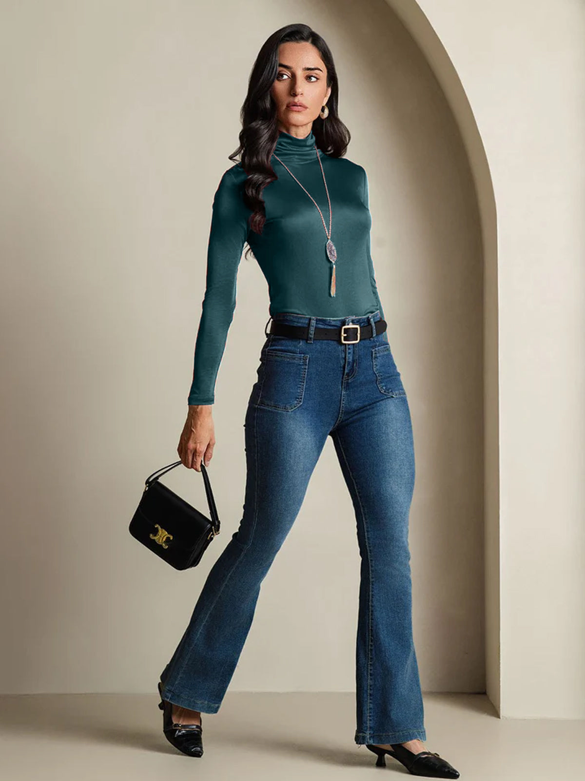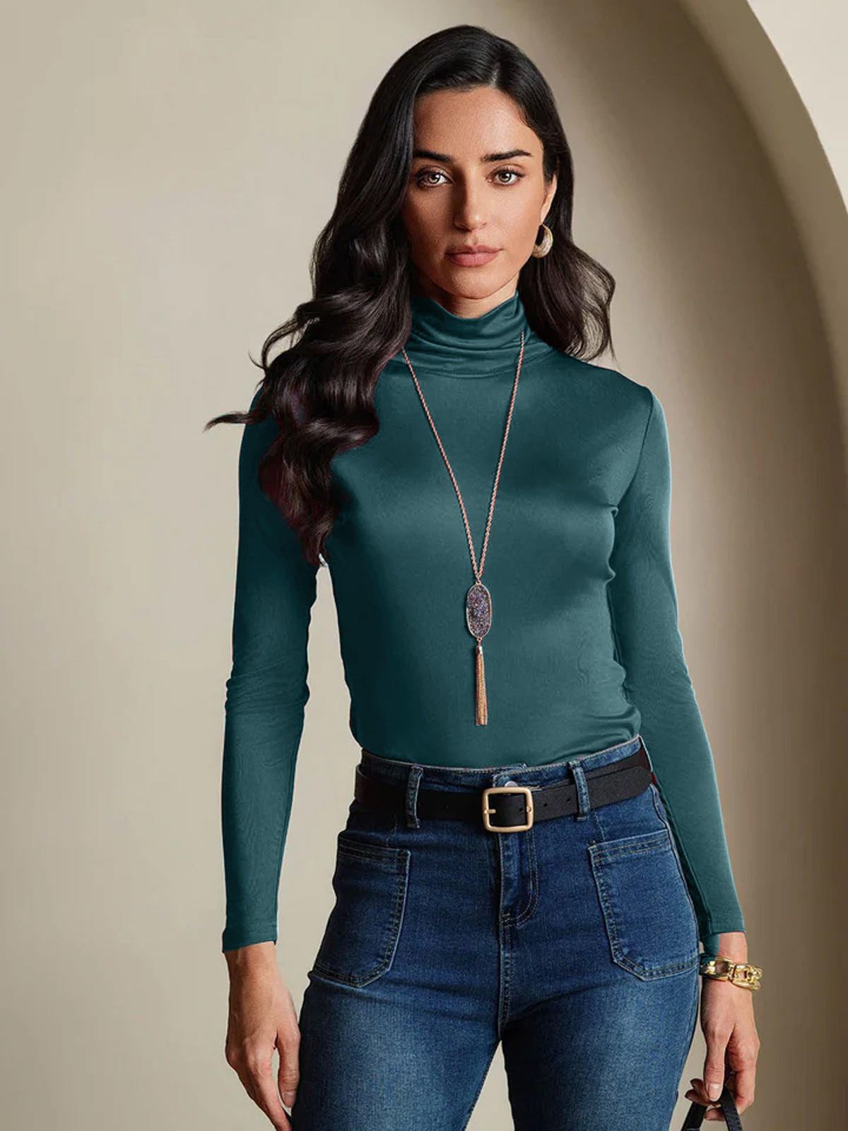 Seidenmischung Rollkragen Langarm T-Shirt