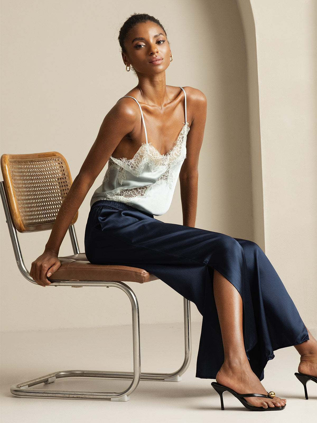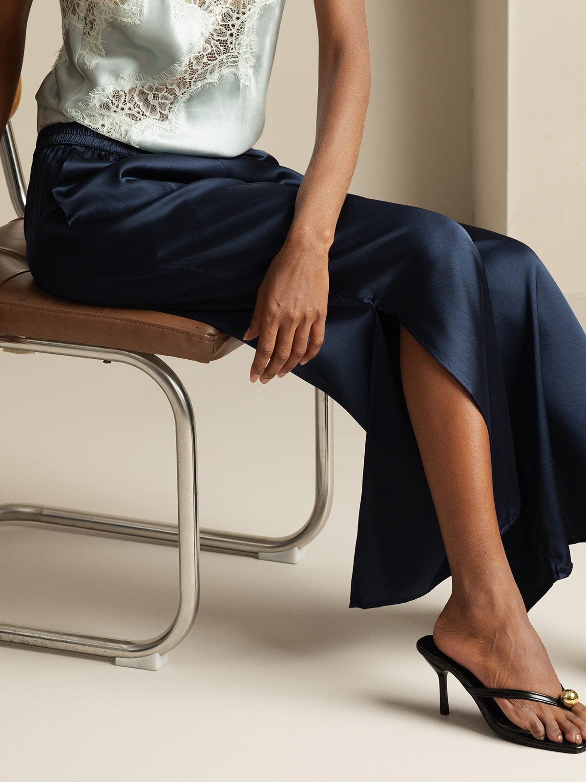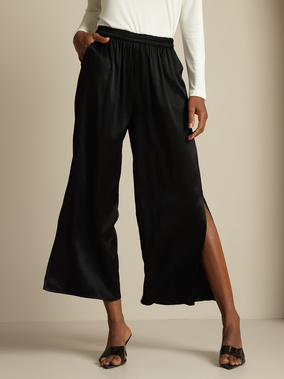 Really happy with how these pants move—light, flowy, and the side slits give just enough shape without feeling too exposed. Mid-rise fit is comfortable, and the waistband doesn't dig in even after hours of wear. Great balance of comfort and style.